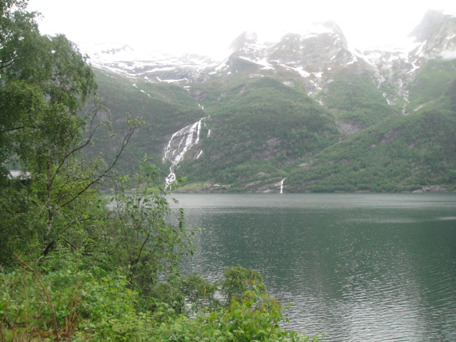 Her langs fjordene er der rigtigt mange af disse høje vandfald.
